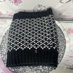Lululemon scarf circle knit logo metal emblem white black thick knitted yarn. Very rare lulu scarf like new. Metal logo emblem. Extremely soft and plush.