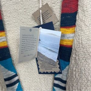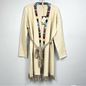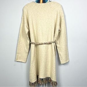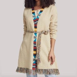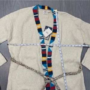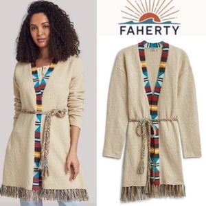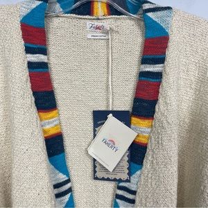 NWT Faherty Crow Stripes Duster Cardigan Braided Belt Border Stripe Ivory M / L