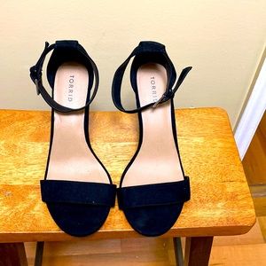 Torrid ankle strap Size 11 W sandals with 4 inch heels. Black Suede cloth.