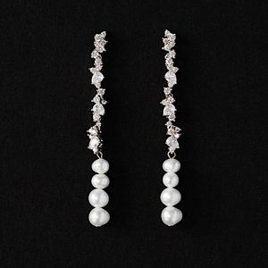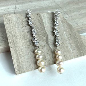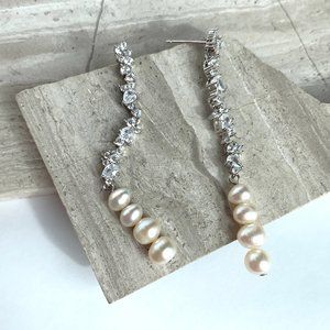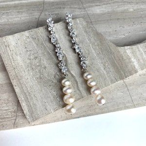 Approx. 2-1/4"L, 1/4"W. Sterling Silver, Cubic Zirconia, Genuine Freshwater pearl. post backs included. NWOT