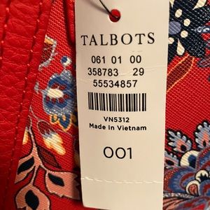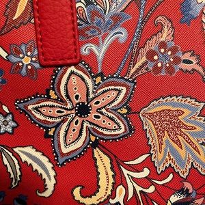 Talbots Large Red Pepper Multi Floral Zip Top Tote Bag in Red Blue Yellow White