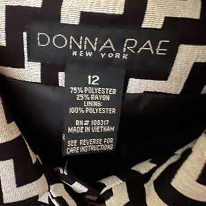Donna Rae NY Dress Coat Black & Cream Chevron Pattern Women's Size 12 (#S109)
