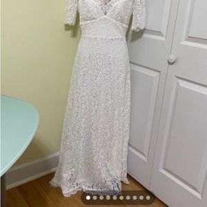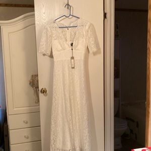 Size 4. Off White long formal gown . Brand new with tags !! Size 4. Fully lined with soft satin material . Can be used as a wedding dress ! Beautiful in person !