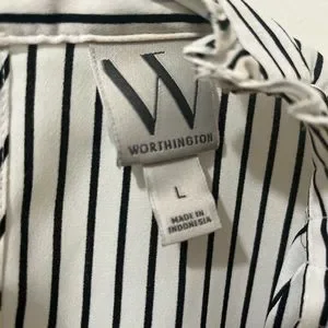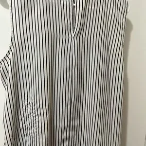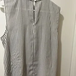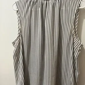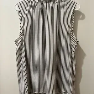 Worn once black and white, stripes, sleeveless, ruffle, turtleneck, classy, dressy, business blouse, size medium