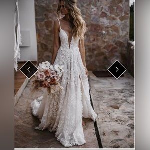 Lace Boho Wedding Dress with Split