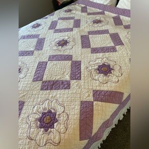 Handmade Lavender Quilt with large Flowers! 74”/92”