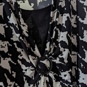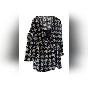 JM COLLECTION BLACK & WHITE HOUNDSTOOTH PRINT TOP W/BUCKLE SIZE 1X PRE-LOVED