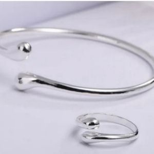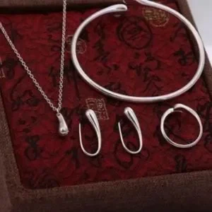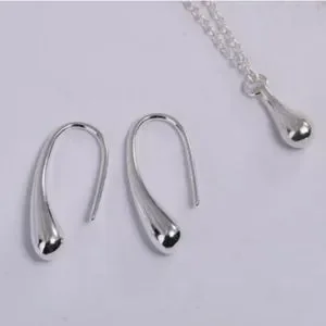 925 Sterling Silver Waterdrop Jewelry Set Bracelet Necklace Earrings and Ring