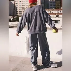 The perfect pair, this sporty set features a soft and slouchy pullover with matching nylon pants in a low-rise fit.