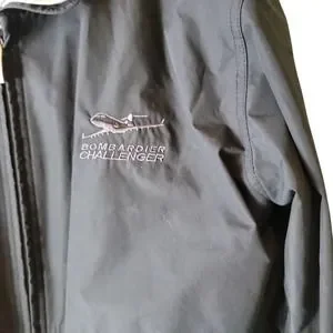 Has Airplane on Front Left Chest with Bombardier Challenge on it.