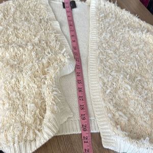 Leo & Sage Womens Cardigan Sweater Open Front Shaggy Faux Fur White M/L