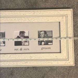 Wedding Picture Frame. Purposely distressed cream frame. Fits three wedding photos (3.5x3.5 inches). This would make a great gift! The size is 24x13 inches.
