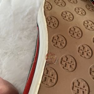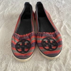 tory burch raymond striped canvas slip on sneakers size 8.5