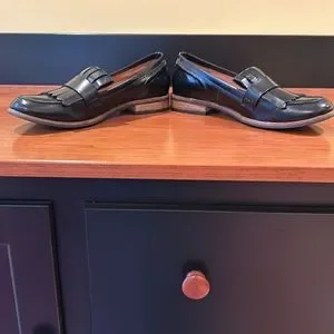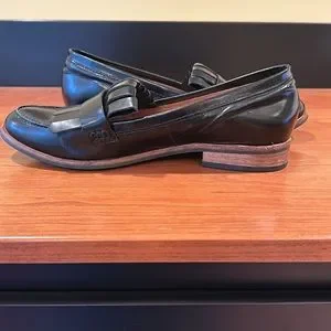 Women’s kiltie loafers. Leather uppers. Black. ~1” heel. Lien Do. Wear on soles & heels as shown in photos. Size 7.5.