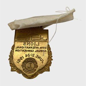Vintage 1961 Lions Club badge from the 44th International Annual Convention held in Atlantic City, New Jersey. The badge measures approximately 1.75".