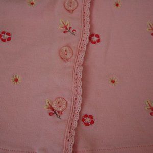 NWOT Cotton Pink Set: Front Button-Down Flower Embroidered Top with Shorts