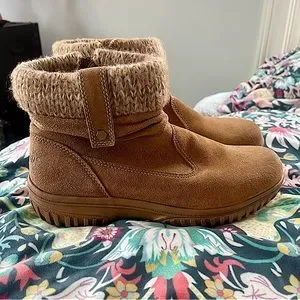 Khombu Laura Suede Leather Boots with Knit Trim in Chestnut Brown