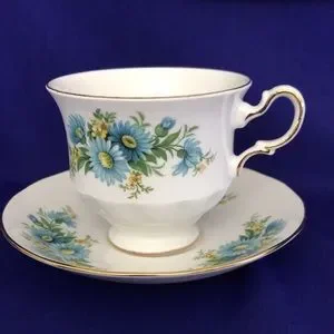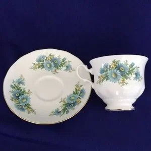 Vintage Queen Anne Blue Flowers Teacup and Saucer
