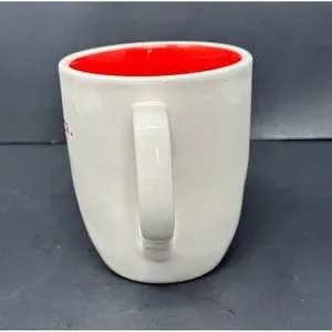 RAE DUNN CHEER White Coffee Mug Typewriter Font Red Interior 20 oz Christmas