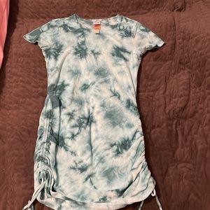 Brand new with tags attached from a smoke free pet free home. Short sleeve ruched side dress. Gorgeous tie dye print. Size Large. Soft terry material. Great for a beach dress or swimsuit coverup.