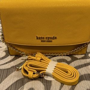 Darling Kate Spade, yellow handbag/purse. Comes with detachable, gold, chain and leather strap. Interchangeable! Don’t miss out on this darling. Authentic brand new Kate Spade bag !