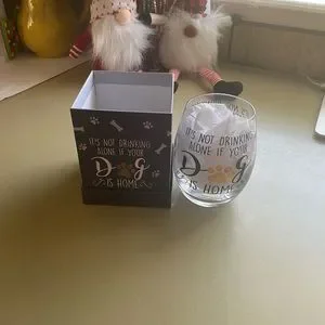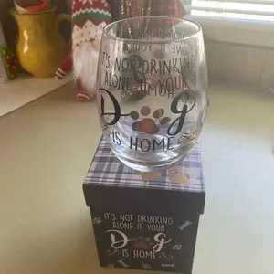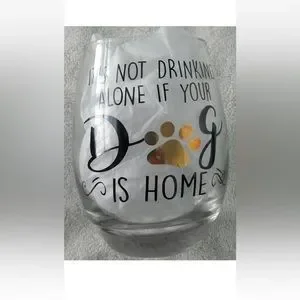 NIB stemless wine glass “IT’S not drinking alone if your dog is home”