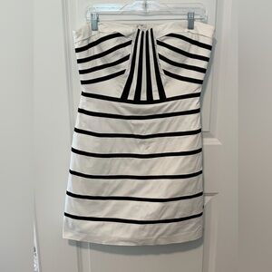Women’s Gianni Bini Strapless Dress Size 10 White with Black Stripes 27 1/2”