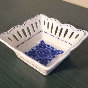 This pretty handpainted square dish is in pristine condition. Hailing from Holland the detailing is quite impressive as this little guy is only 3.5"x3.5"! I haven't found any flaws to note.
