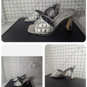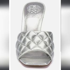 Vince Camuto Silver Quilted Mules Heeled Sandals NWT Size 9