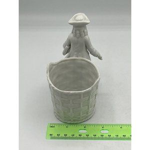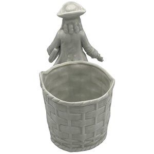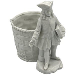 CAPODIMONTE Colonial Man Figurine White Porcelain Planter Crown N Mark 4.75 inch