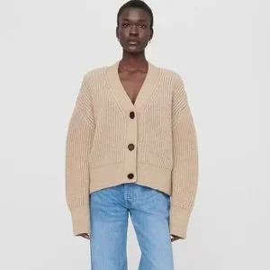 The Maxwell Cardigan is cut for a slightly cropped, boxy fit.