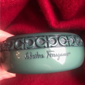 Salvatore Ferragamo green bangle bracelet. Opening is 2.8 inches wide. Two small scratches on back. Retail $350.00. $90.00
