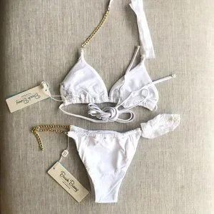 The Brooklyn set is not your typical bikini! It features gold chain hardware on each side that is adjustable.