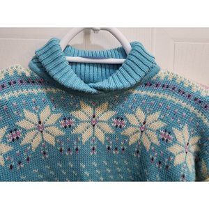 Vintage Obermeyer Womens Pullover Ski Sweater Blue Fair Isle Wool Blend See Info