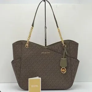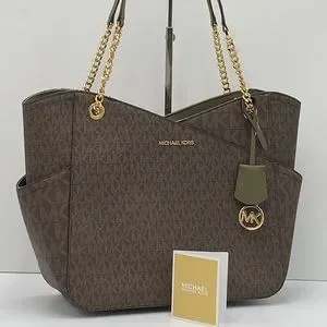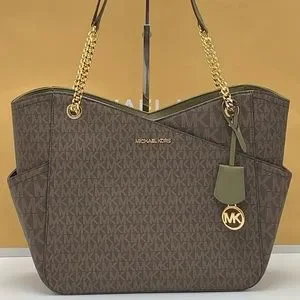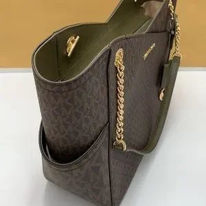 MICHAEL KORS Jet Set Large Logo Tote Chain Shoulder Bag COLOR OLIVE NWT