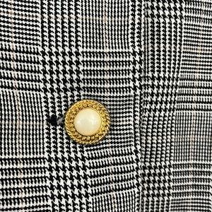 1990s Checkered Houndstooth Blazer – Vintage Charm with Faux Pearl Detail #410