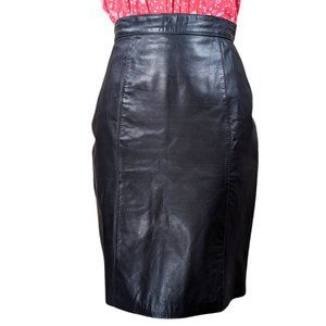 Genuine Black Leather Pencil Skirt Vintage XS Made in Argentina
