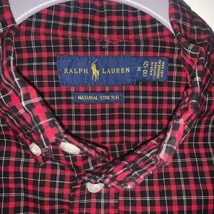 Excellent condition shirt by Ralph Lauren boys size M (10/12). Worn twice for Christmas and Christmas Eve mass. Photo is showing dark - it’s a nice bright Christmas red.