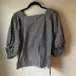 LOFT Women Small Blouse square neck balloon sleeve striped top business casual