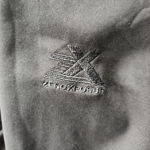 ZEROXPOSUR Ladies Full Zip Jacket. Size XL. Black Colored. Wind & Water Resistant. Inside & Outside Pockets. Inside Fleece Lined. Snaps on side to adjust for a better fit. Smoke Free Home.
