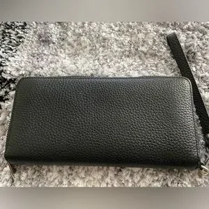 Michael Kors Black Continental travel wristlet/wallet. Silver hardware, 17 card slots, 5 slip pockets, zip pouch, and can also hold a phone.