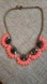 Gorgeous charcoal crystals accented by bright orange almost a bit of a melon color stones