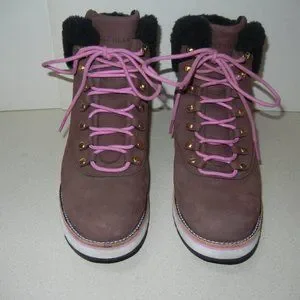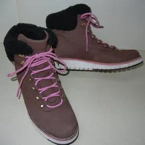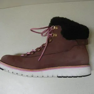 * Cole Haan Sz 9 Womens Grand Explore Boot Waterproof Shearling Hiker Wedge Suede