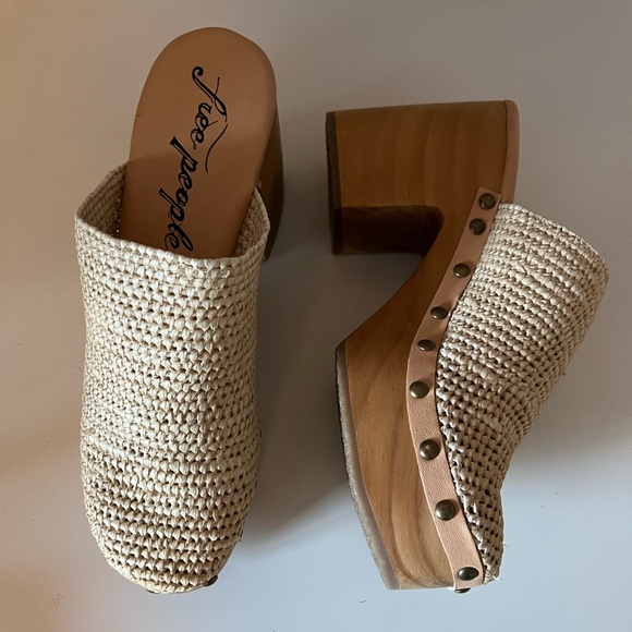 The Free People Claudia Crochet Beige Raffia Leather Studded Clogs are here to be your new summer faves!