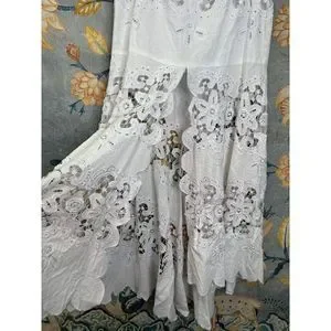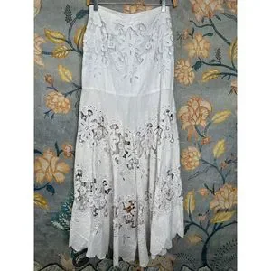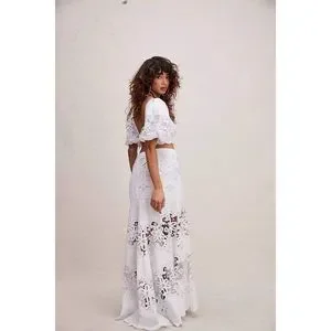Turn heads in this stand-out high-rise maxi skirt with stunning cut-out lace detailing and scalloped trim throughout for a forever classic touch.