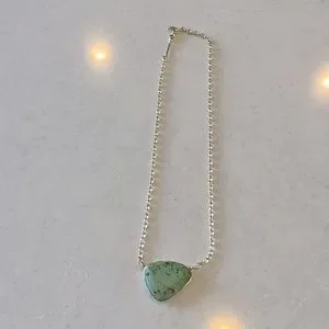 Kendra Scott green jade-like pendant on 22” gold chain. Chain looks more silver in photos to get more accurate representation of color of stone.
