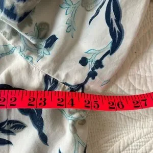 Lafayette 148 cotton button down shirt white blue gray floral print size 22