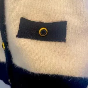 Lovely button down vintage cardigan in black and white angora and lambswool. Minimalist with a touch of fun a la gold buttons.