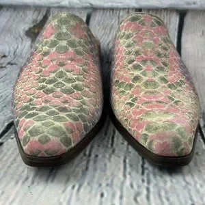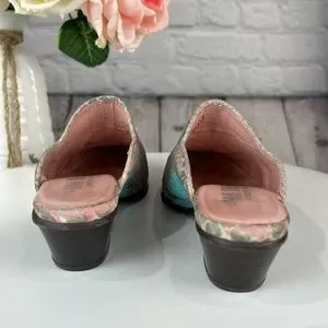 OAK TREE WESTERN WEAR Muti Color Snakeskin Print Leather Low Heel Mules
