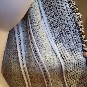 Rebecca Taylor, NWOT, Size 2, cream and black tweed jacket with fringe details at cuffs, along collar, and front , single hook and eye closure, shoulder pads for structure, fitted styling with panelled cut details. Really nice structure!! P to P 16"